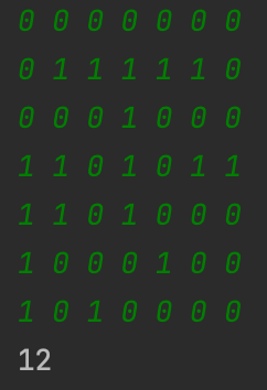 // 7*7 격자판 미로를 탈출하는 최단경로의 길이를 출력하는 프로그램
