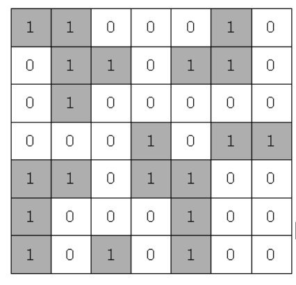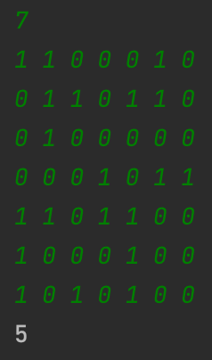 문제 설명 N*N의 섬나라 아일랜드의 지도가 격자판의 정보로 주어집니다. 각 섬은 1로 표시되어 상하좌우와 대각선으로 연결되어 있으며, 0은 바다입니다. 섬나라 아일랜드에 몇 개의 섬이 있는