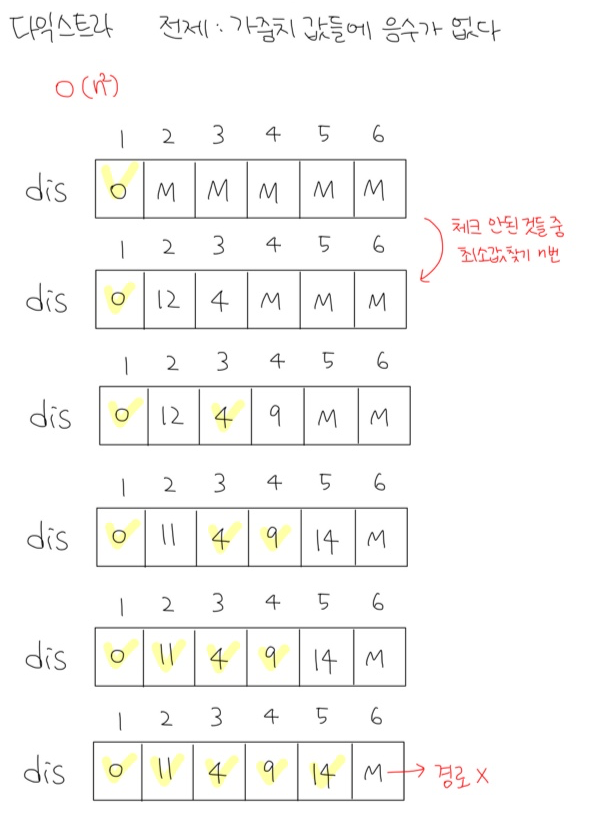 1) 다익스트라 - O(n^2) 시간복잡도일 경우
