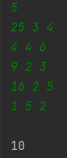 입력 파일의 첫째 줄에는 입력될 벽돌의 수가 주어진다. 입력으로 주어지는 벽돌의 수는 최대 100개이다.