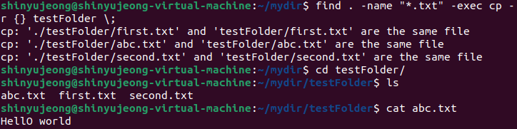 ⭐ find . -name "*.txt" -exec 명령어 {} 복사대상폴더 \;