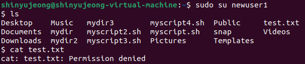 newuser1는 읽기 권한이 생겼기 때문에 txt파일 읽기 가능