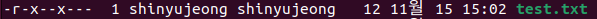 chmod o=r test.txt : 다른 사용자의 권한을 읽기만 가능하게 설정