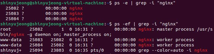 서버 앞 단에서 라우팅 역할을 하는 nginx가 죽는 상황이 의심된다면 (옛날 서비스) grep으로 동작 확인
