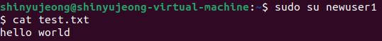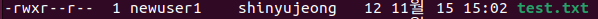 newuser1는 읽기 권한이 생겼기 때문에 txt파일 읽기 가능