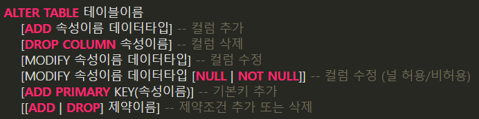 데이터베이스나 테이블, 뷰 등을 생성, 삭제하거나 구조를 변경