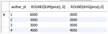 2. 만약 post마다 원고료가 있었다면, select author_id, sum(price), avg(price) from post group by author_id