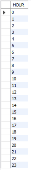 WITH RECURSIVE number_sequence(HOUR) AS ( SELECT 0 UNION ALL SELECT HOUR + 1 FROM number_sequence WHERE HOUR<23)