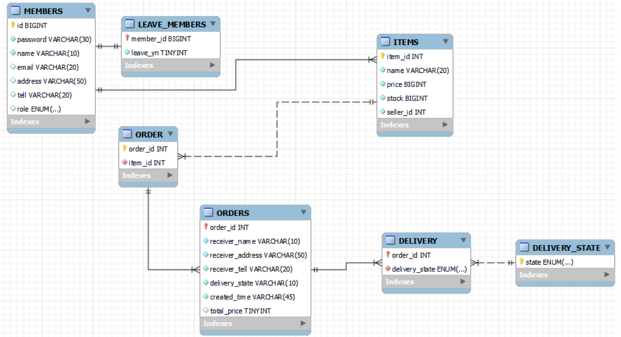 - ERD 다이어그램을 통해 데이터베이스의 구조를 시각화