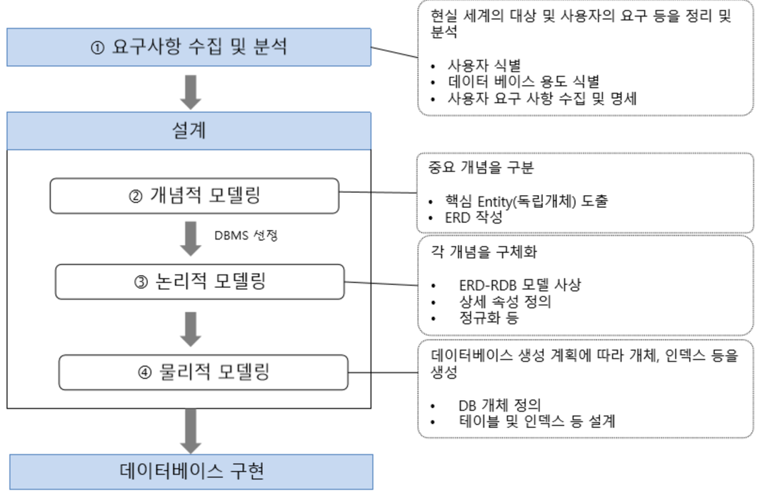 - 실제 데이터베이스를 만드는 과정이고, SQL 작성이 여기에 해당