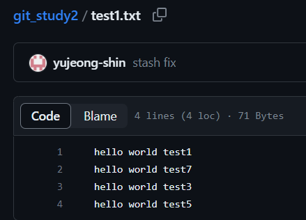 2. 내 local에서 test3.txt파일 변경하여 push 시도