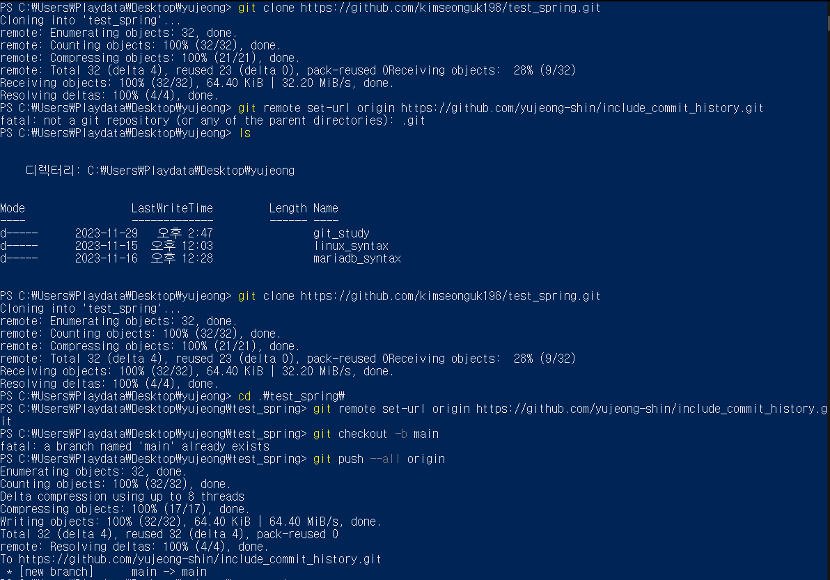 - 강사의 public repository를 clone하되 모든 브랜치의 commit을 유지하고 본인의 repository로 업로드