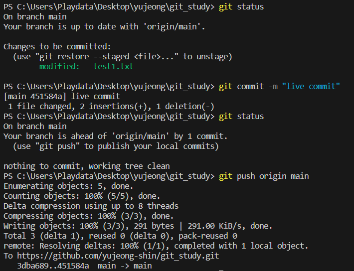-> origin/main 코드 위에 내가 수정한 코드를 올려 push
