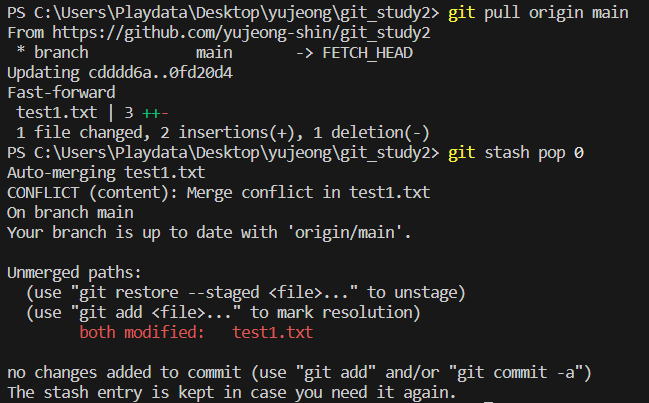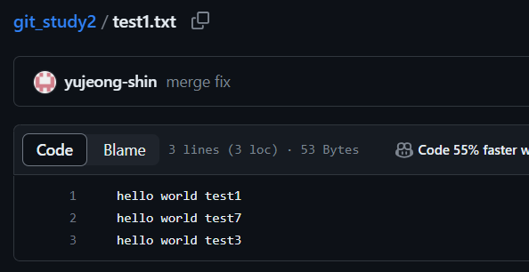 - 차이점을 참고하여 일단 merge 후에 파일 수정하고 다시 push