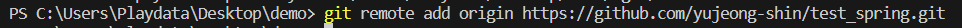 2. GitHub에서 로컬 저장소와 연결할 원격 저장소 생성 "test_spring"