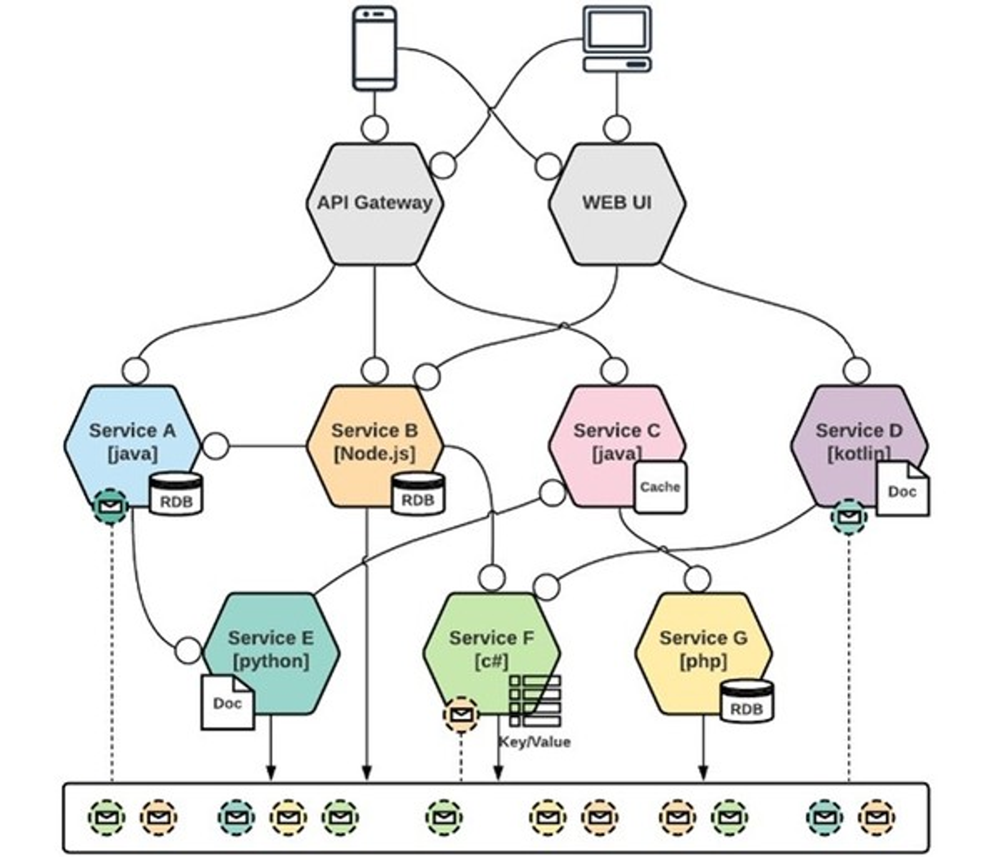 - 서비스는 저마다 데이터베이스를 가지며, 각 서비스마다 더 적합한 기술이 사용