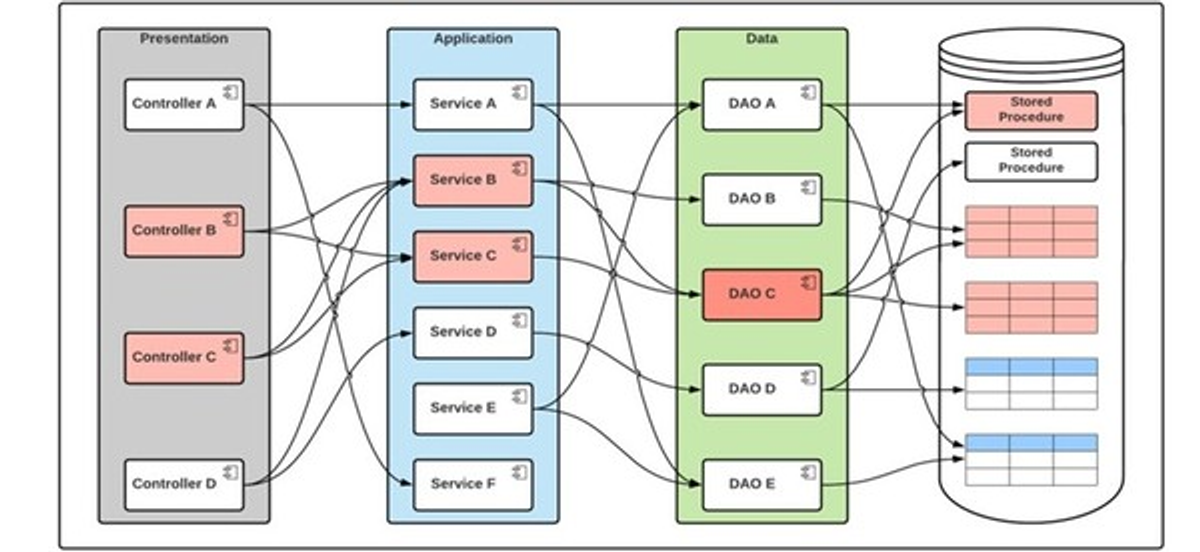- 하나의 모듈을 수정할 때, 이를 참조하거나 영향을 받는 모든 모듈들도 영향을 받을 수 밖에 없는 구조