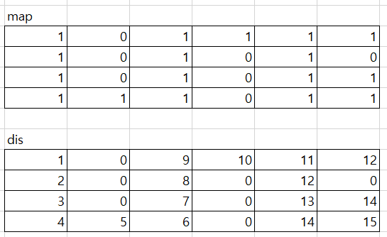 최종적으로 dis[N][M]을 출력하면 그 칸까지의 최소 거리가 된다.