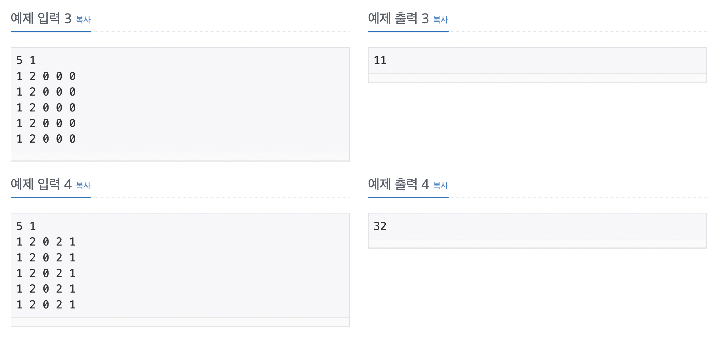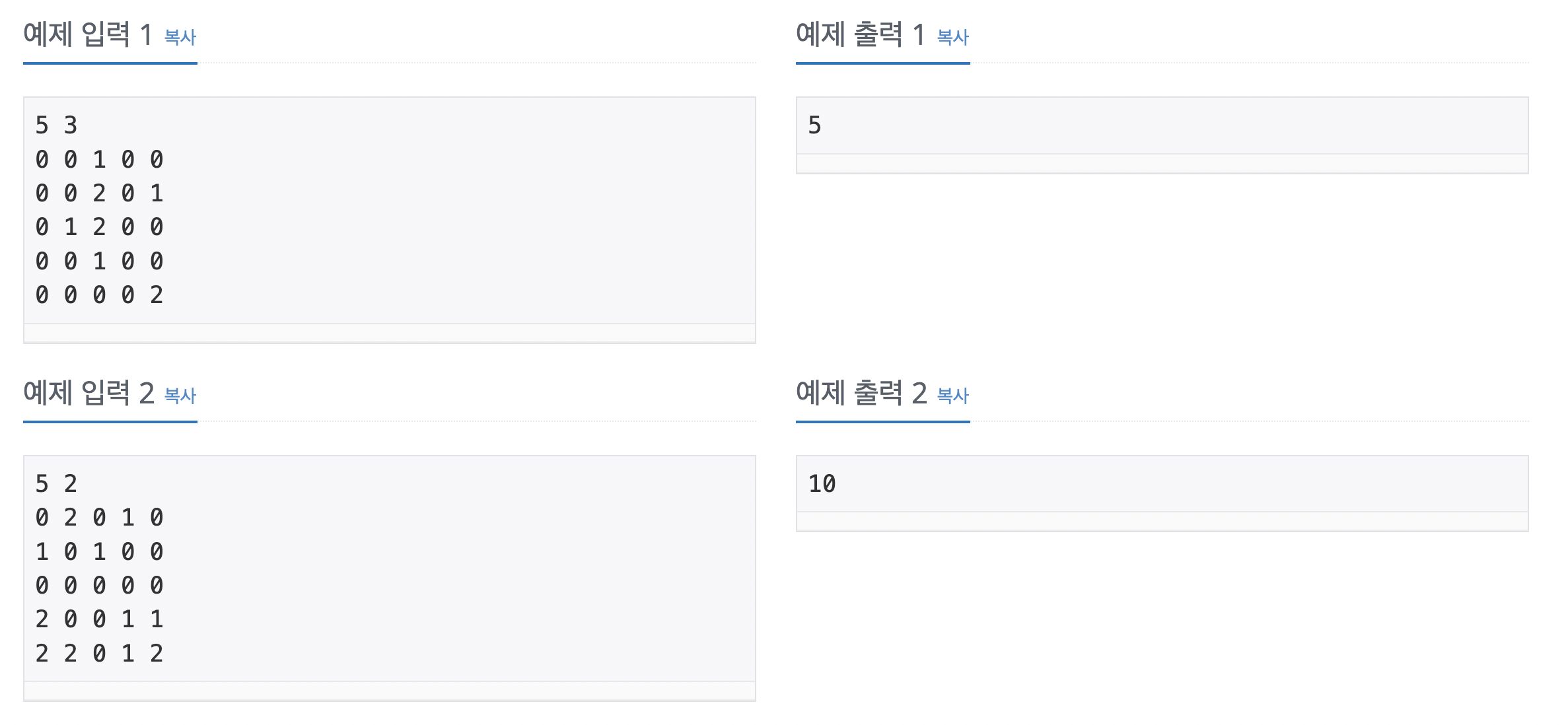 첫째 줄에 N(2 ≤ N ≤ 50)과 M(1 ≤ M ≤ 13)이 주어진다.