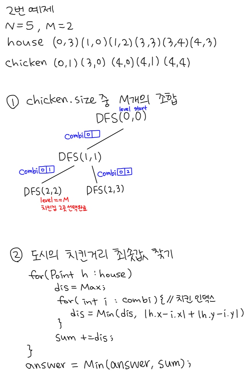for(int i : combi) { // i : m개만큼 고른 치킨집의 인덱스