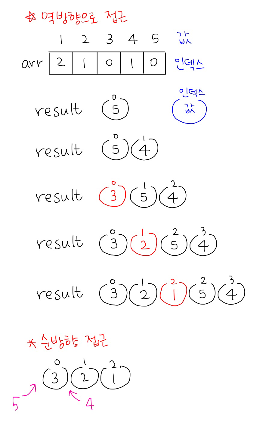 List에 답을 넣어줄 때, arr배열의 인덱스를 몇 번째 사람인지의 값으로, arr배열의 값을 인덱스 정보로 사용한다.