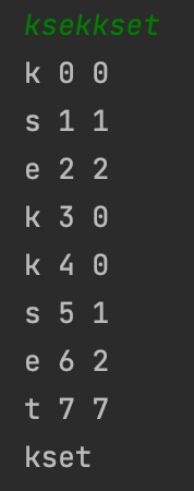 첫 줄에 중복문자가 제거된 문자열을 출력합니다.