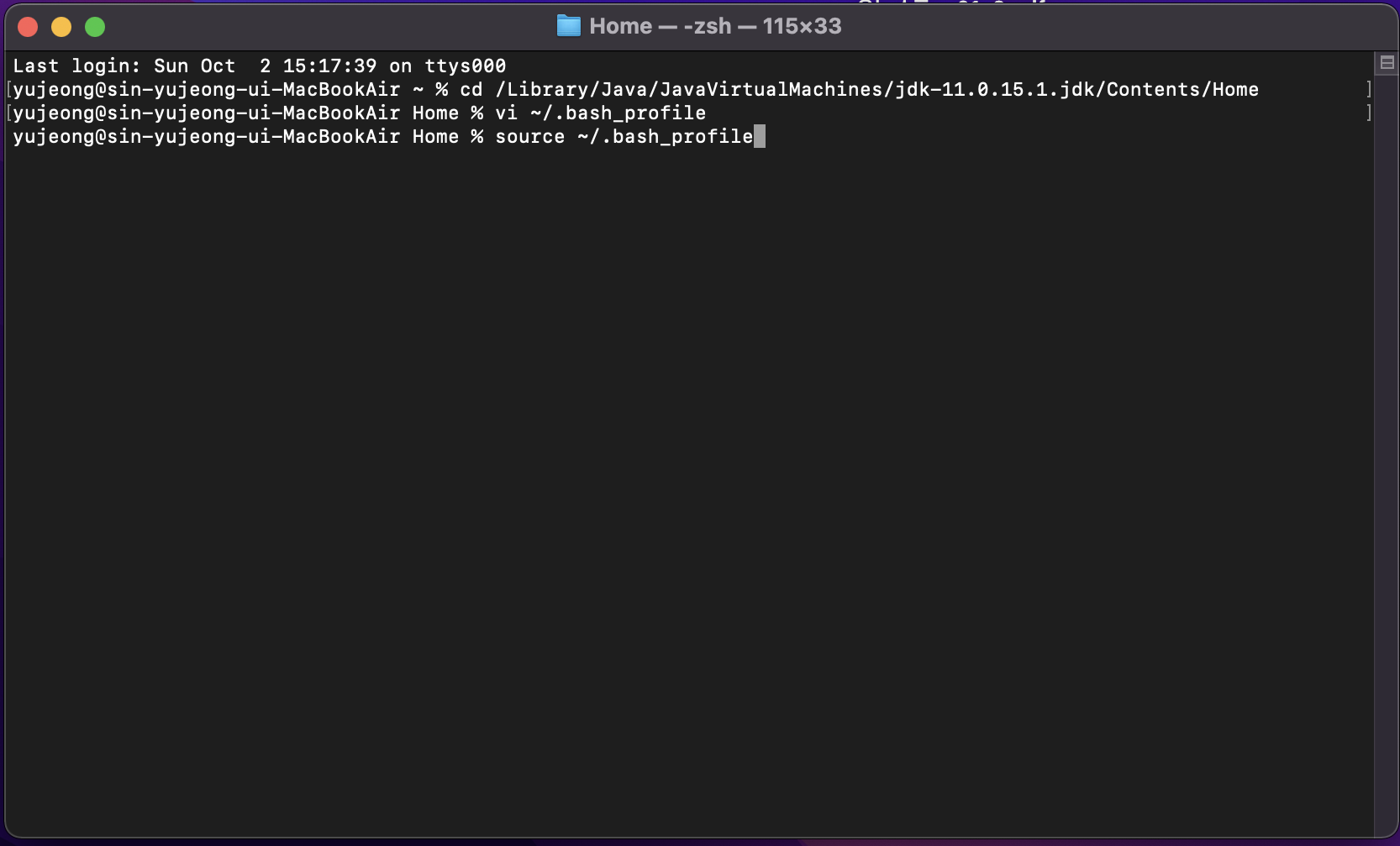현재까지의 폴더 경로 : /Library/Java/JavaVirtualMachines/jdk-11.0.15.1.jdk