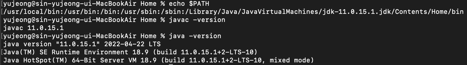 JDK 경로 : /Library/Java/JavaVirtualMachines/jdk-11.0.15.1.jdk/Contents/Home