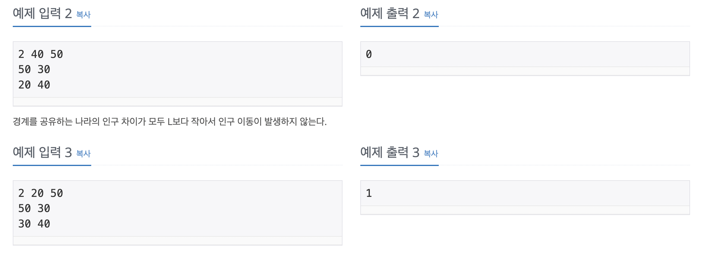 - 위의 조건에 의해 열어야하는 국경선이 모두 열렸다면, 인구 이동을 시작한다.