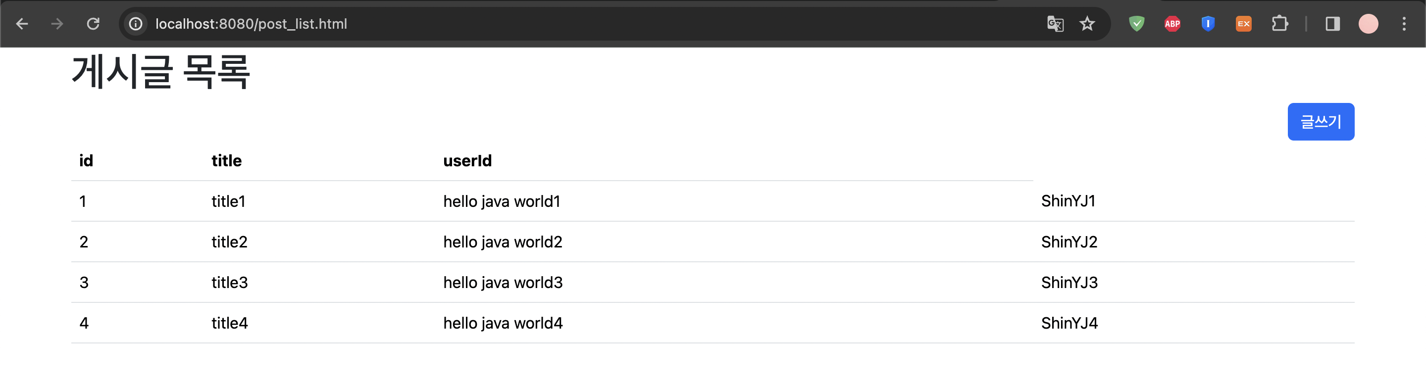 (1) CORS 오류 해결방법 2번으로 CORS 오류를 잡아주고 http://localhost:8080/post_list.html을 입력한다.