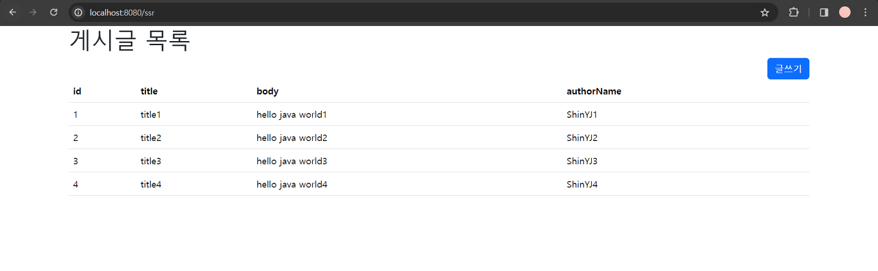 📌 SSR 방식으로 데이터 조회해서 HTML 띄워보기 - 타임리프를 통해 데이터가 담긴 HTML 반환