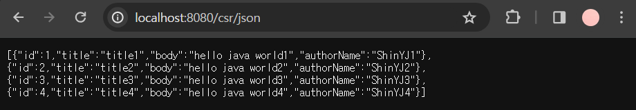 @GetMapping("/csr/json") //전체 url에다가 localhost:8080/csr/json치고 들어오면 해당 함수와 매핑