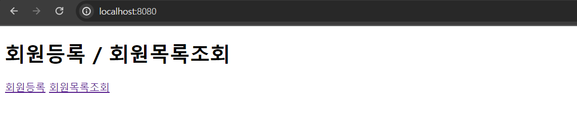 회원등록/회원목록조회를 누름에 따라 아래 화면만 블록 끼우듯이 바뀌는 것을 확인할 수 있다.