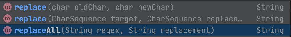 replace()와 replaceAll() 모두 특정 문자(혹은 문자열)를 다른 문자로 치환