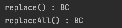 System.out.println("ABC -> 빈 문자열 치환 : "+ result);
