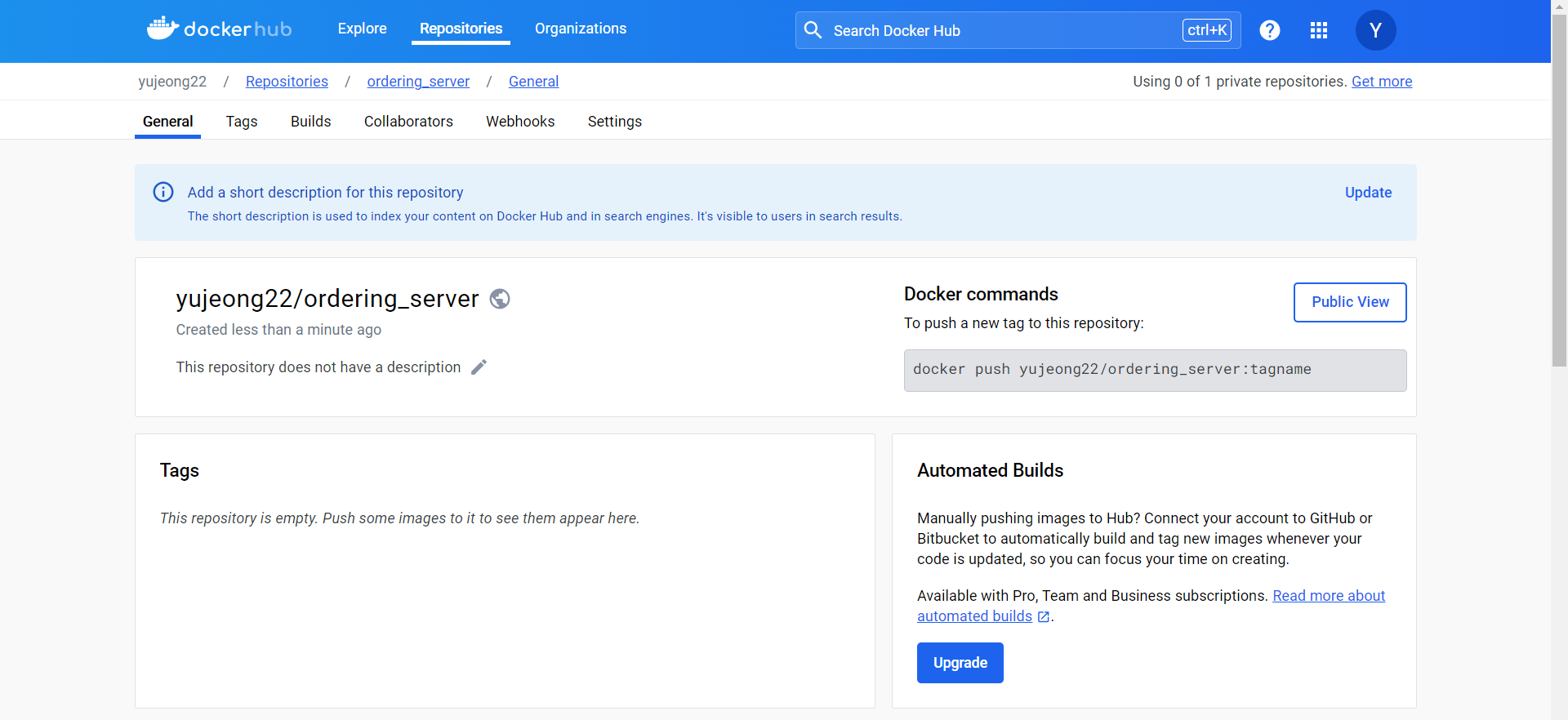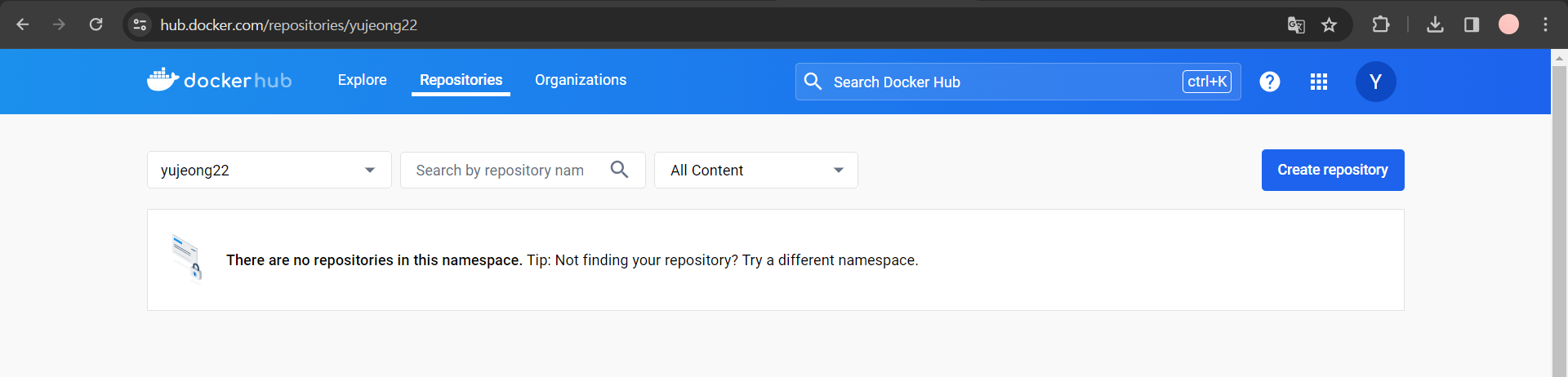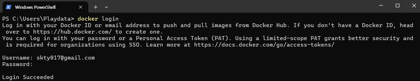 이때 로그인 안된다면 docker hub에서 비밀번호 변경할 것