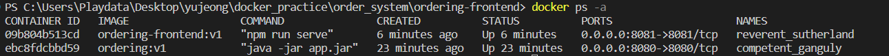 2. docker run -d -p 8081:8080 ordering-frontend:v1
