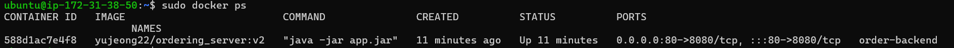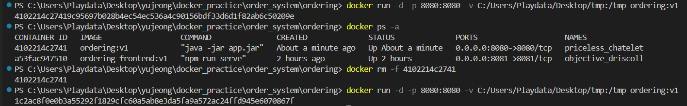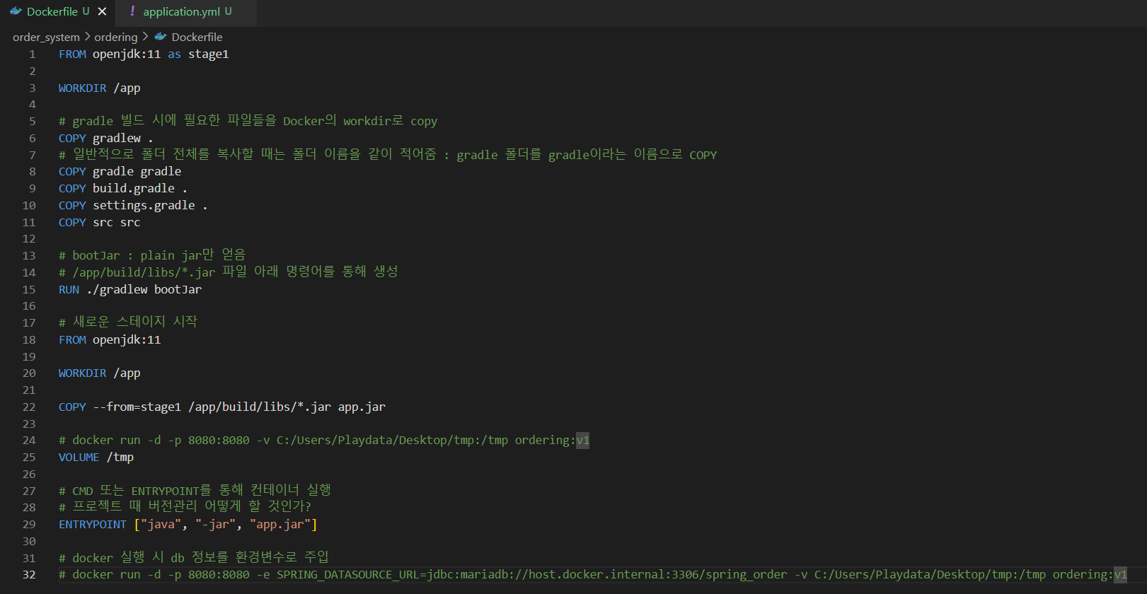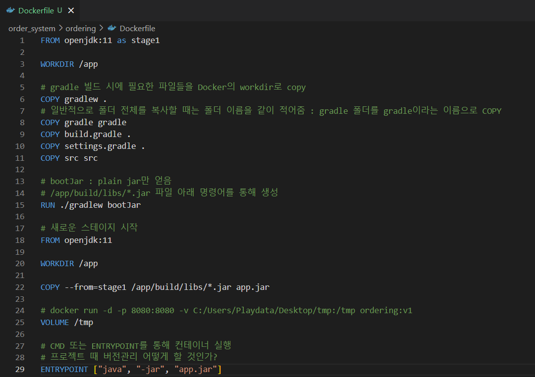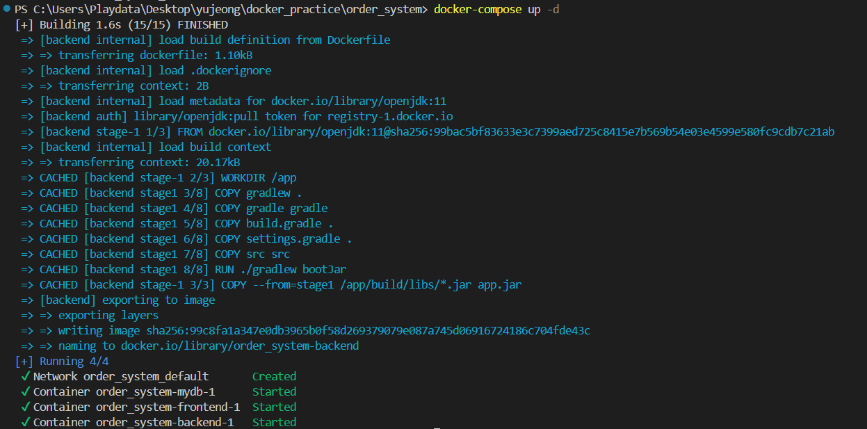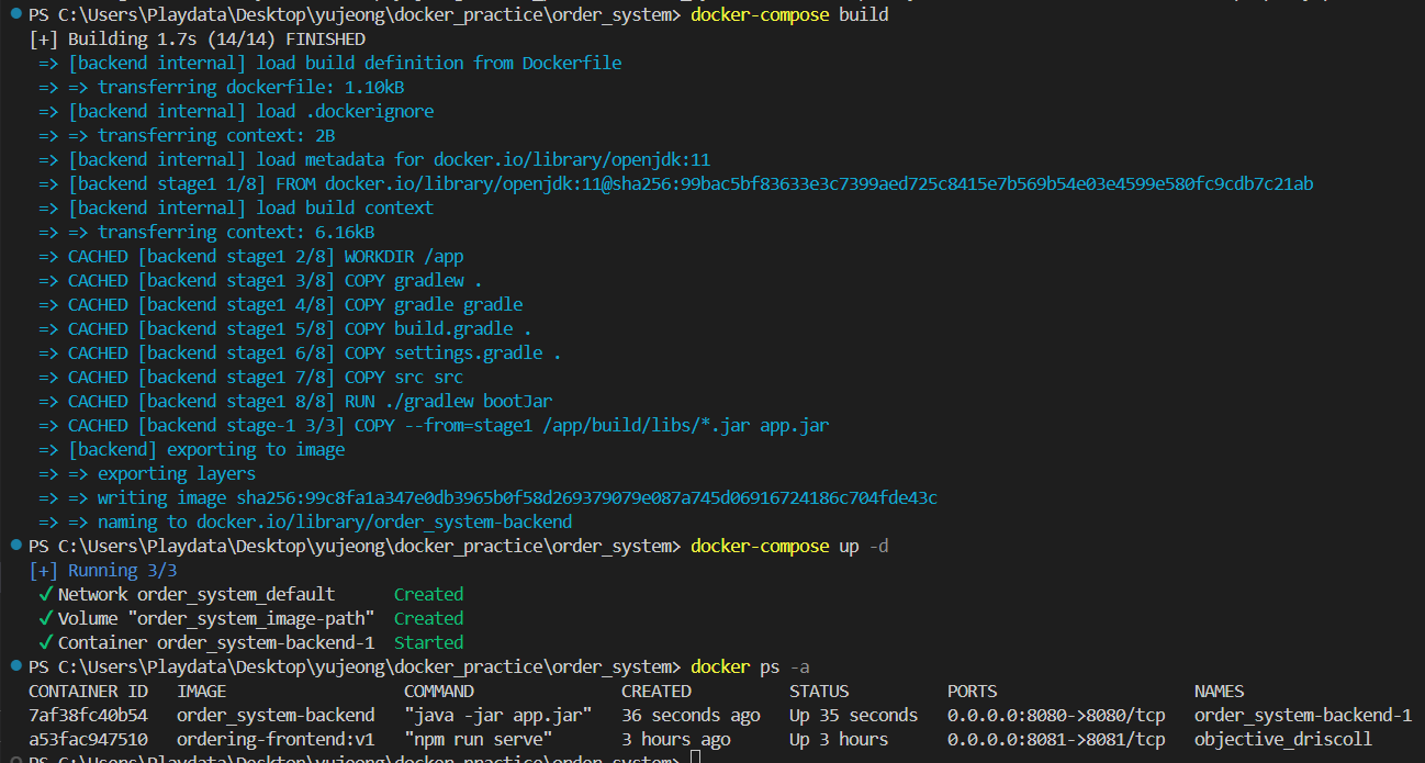 docker build -t order_backend:v1.0 -f ./Dockerfile . => ./Dockerfile 생략 가능 => docker build -t order_backend:v1.0 .