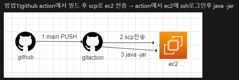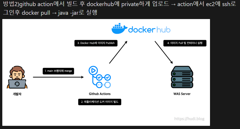 git action을 통해 도커 이미지를 private push 해놓고, ec2에 SSH 접속해서 이미지를 다운로드해서 실행하는 방법이다.