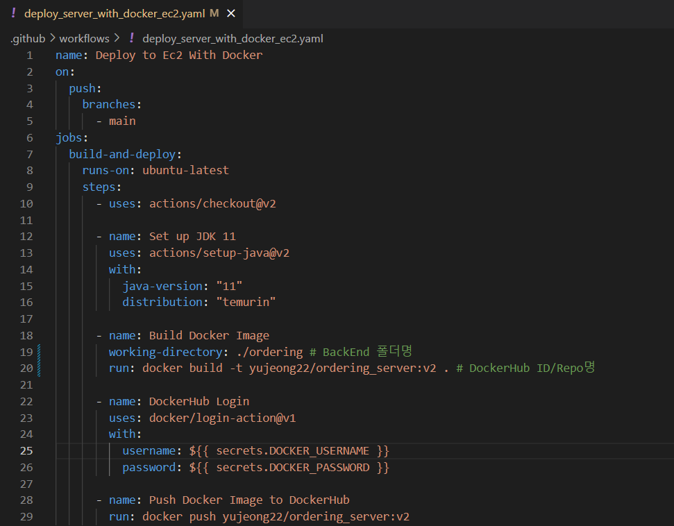 만약에 docker-compose를 쓰고 싶다면, EC2에서 vi 작업으로 docker-compose 파일을 갖고 있게 하거나,