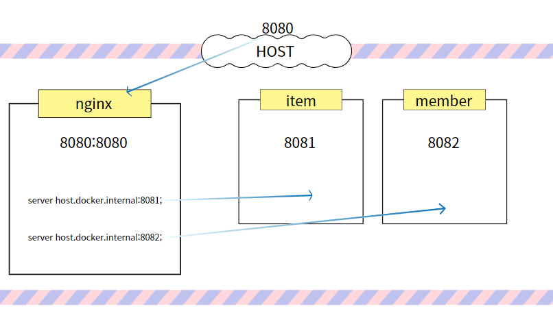 front는 host에다가 화면을 주고, host 입장에서 외부포트로 적혀있는 8080을 찾아서 back end로 가서 문제가 생기지 않음.