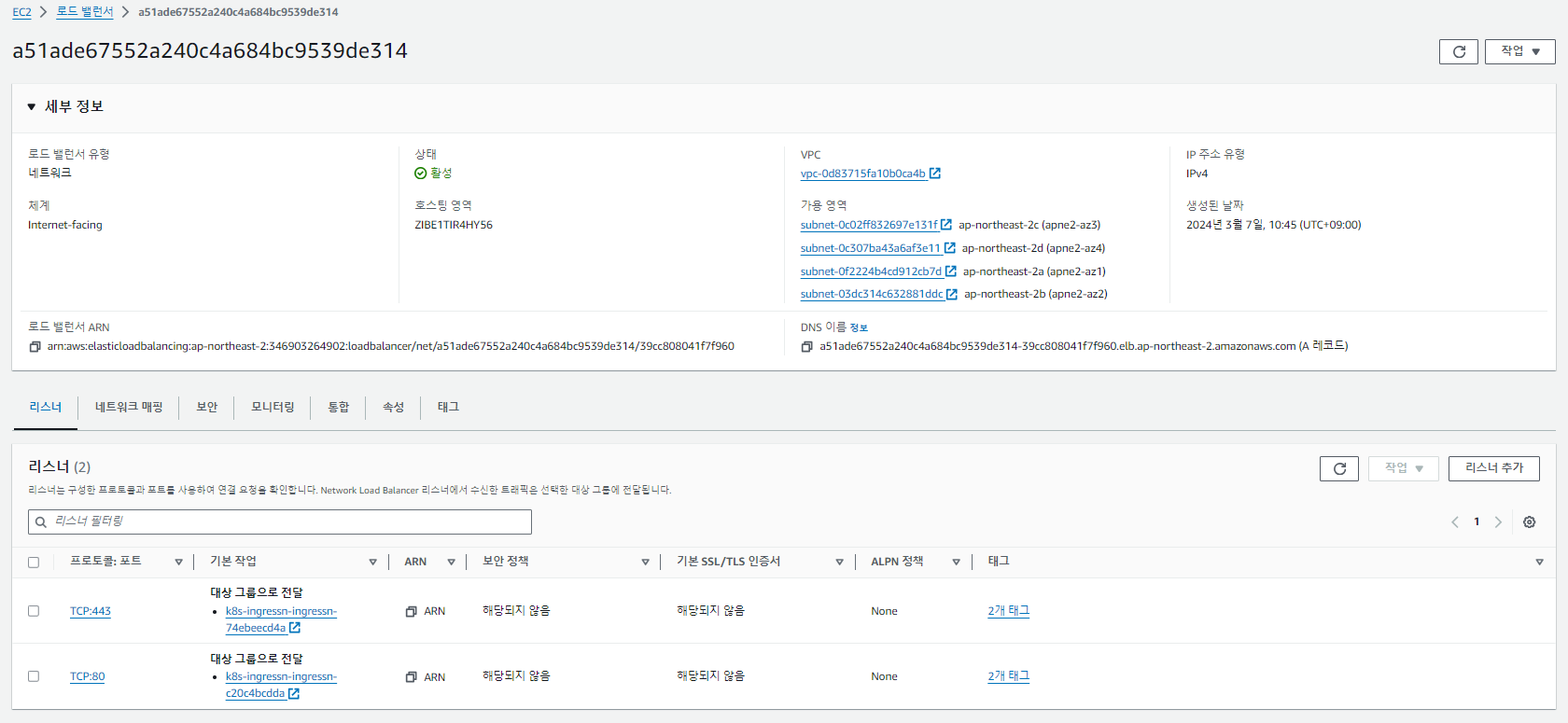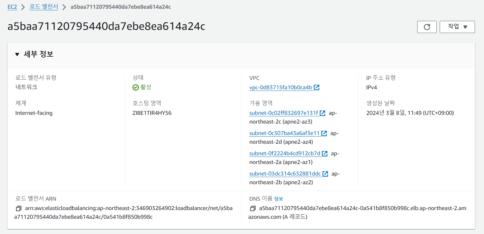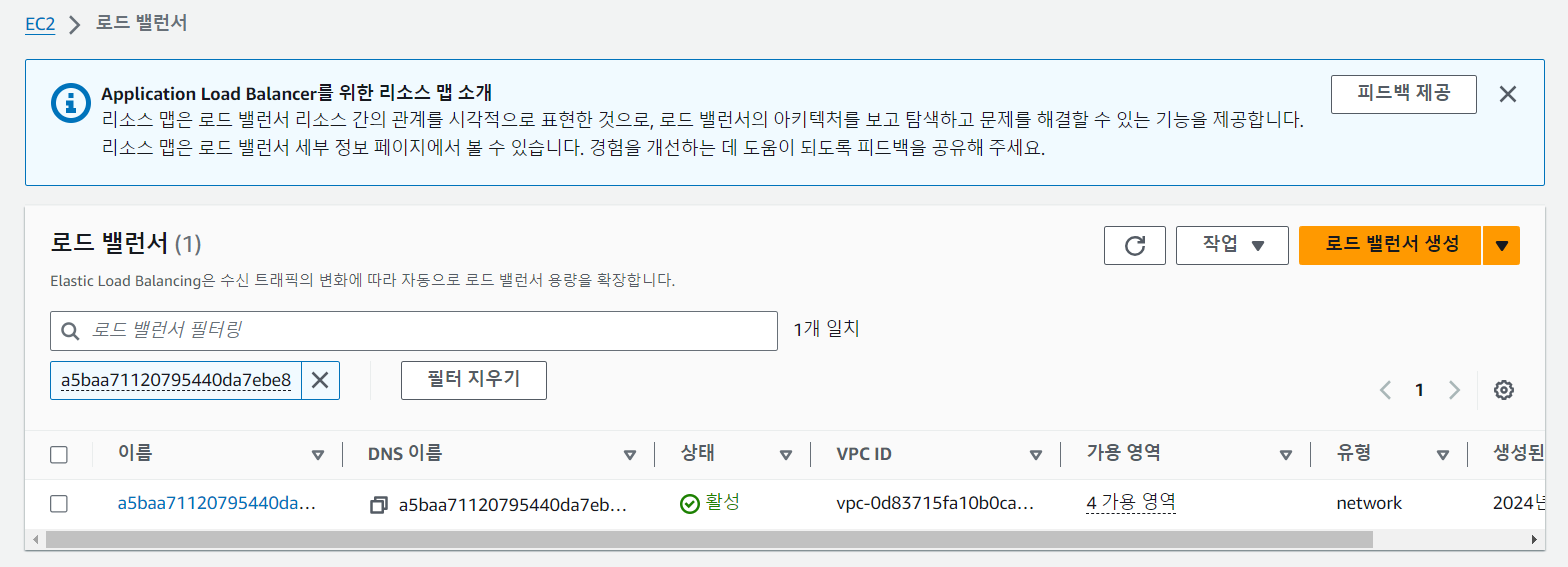 만들어지면서 보안그룹과 타겟그룹(target Port) 생성 등 로드밸런서 호출에 필요한 작업을 모두 해준다.