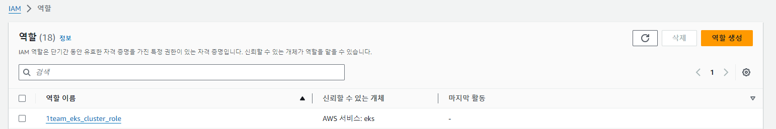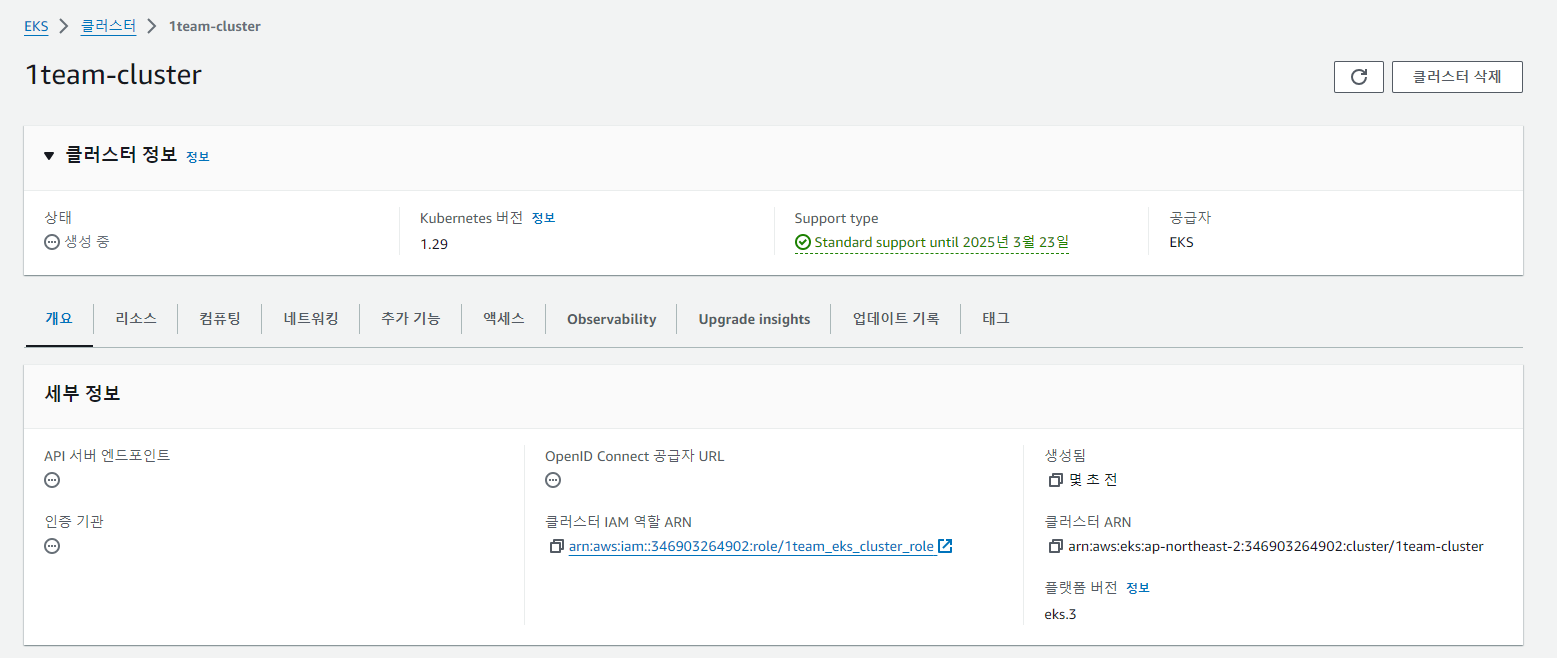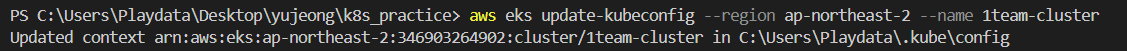 aws eks update-kubeconfig --region ap-northeast-2 --name 1team-cluster