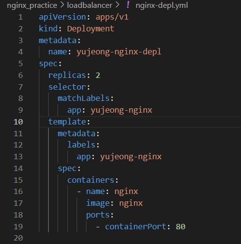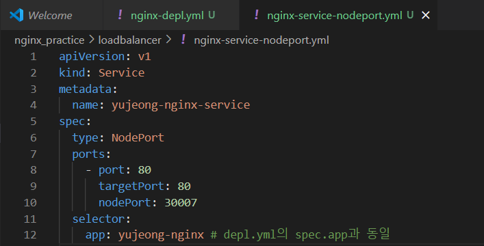 app: yujeong-nginx # depl.yml의 spec.app과 동일