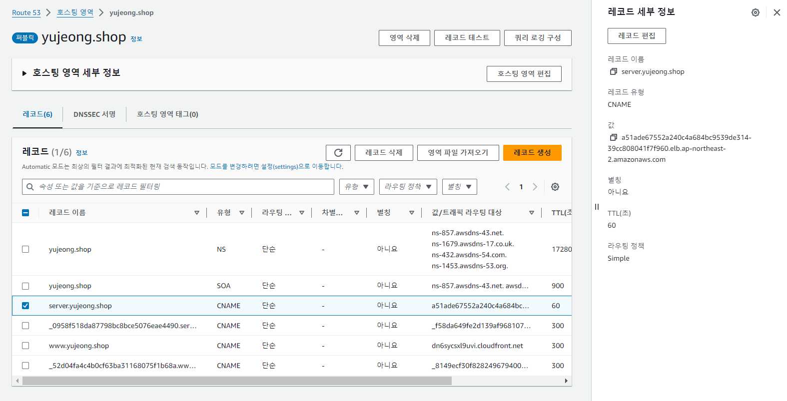 내 AWS ROUTE53에 LB경로를 생성된 LB 경로로 수정해주면 ~