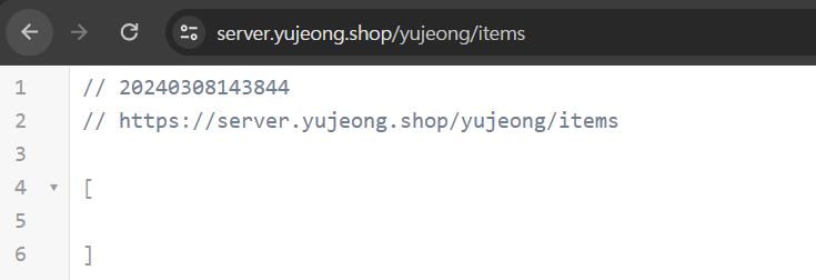 server.yujeong.shop/yujeong/items로 테스트 했을 때,
