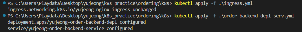 order-backend-deply.yml에서주석처리 한 EKS kubectl apply 부분을 살려준다.