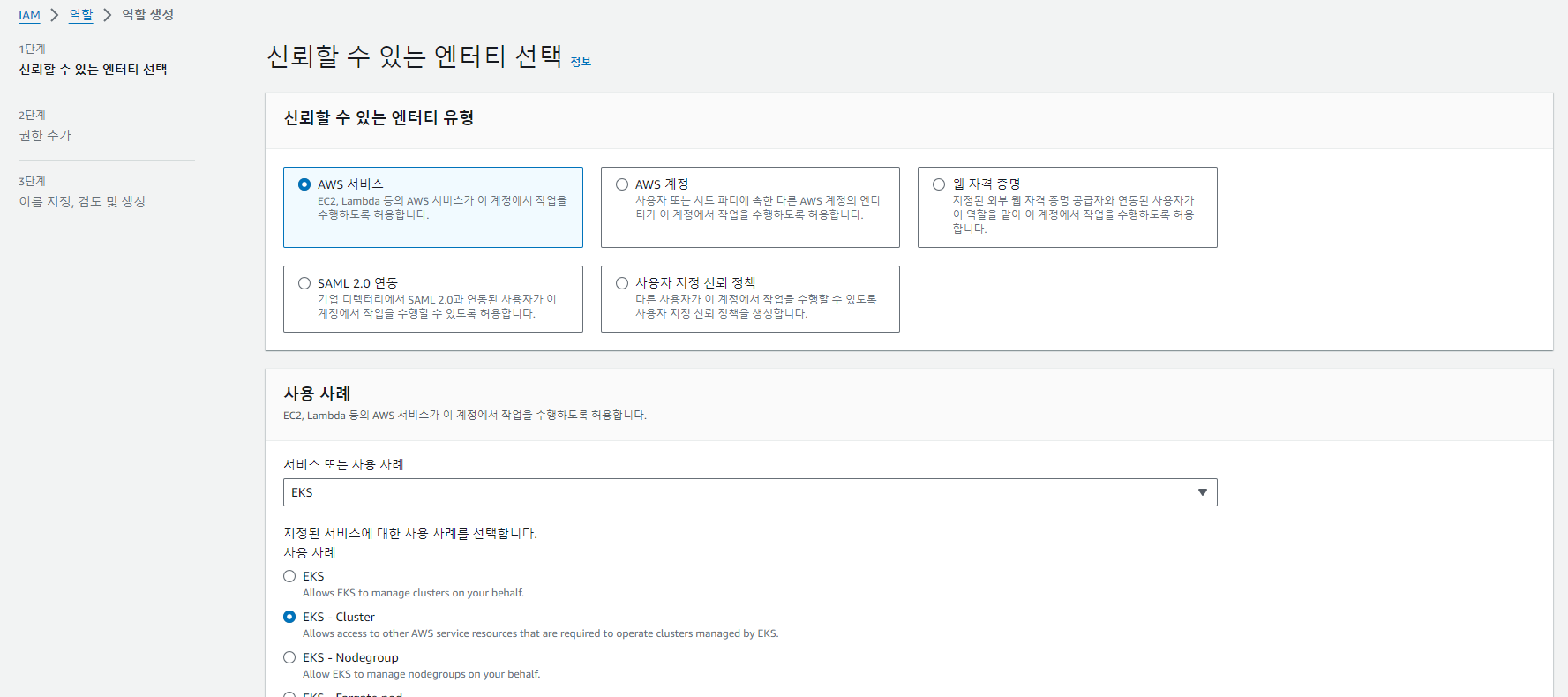 eks 클러스터 생성
