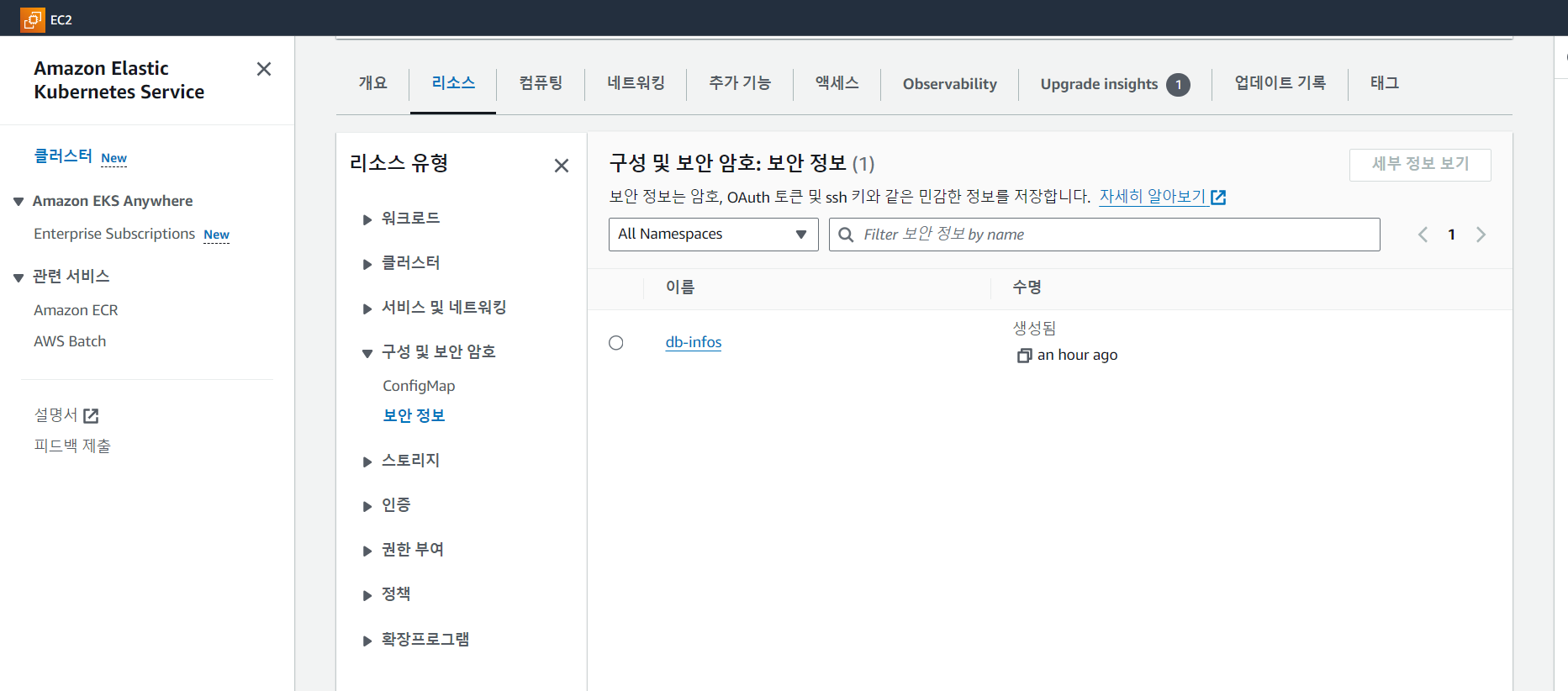강사님 EKS -> 리소스 -> 보안 정보 -> db-infos -> DB정보들을 디코딩해서 DB Connection 생성