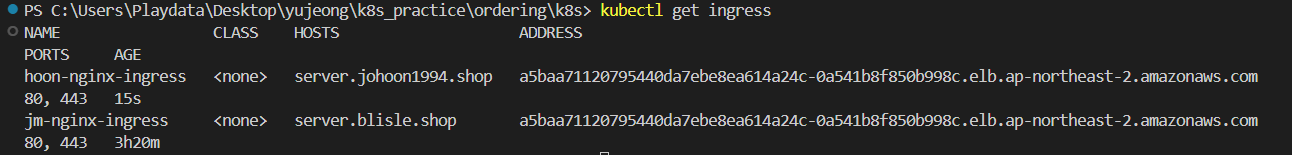 ingress 확인해서 붙은 로드밸런서 이름 확인해주고 ~
